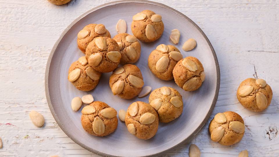 Ofen auf 170 °C Ober-/Unterhitze vorheizen. Aus dem Teig 12 walnussgroße Kugeln formen, auf ein mit Backpapier belegtes Backblech legen und auf jede Kugel seitlich 3 blanchierte Mandeln drücken. Eigelb mit 1 EL Wasser vermischen und die Plätzchen damit bepinseln. 20 Min. backen.
