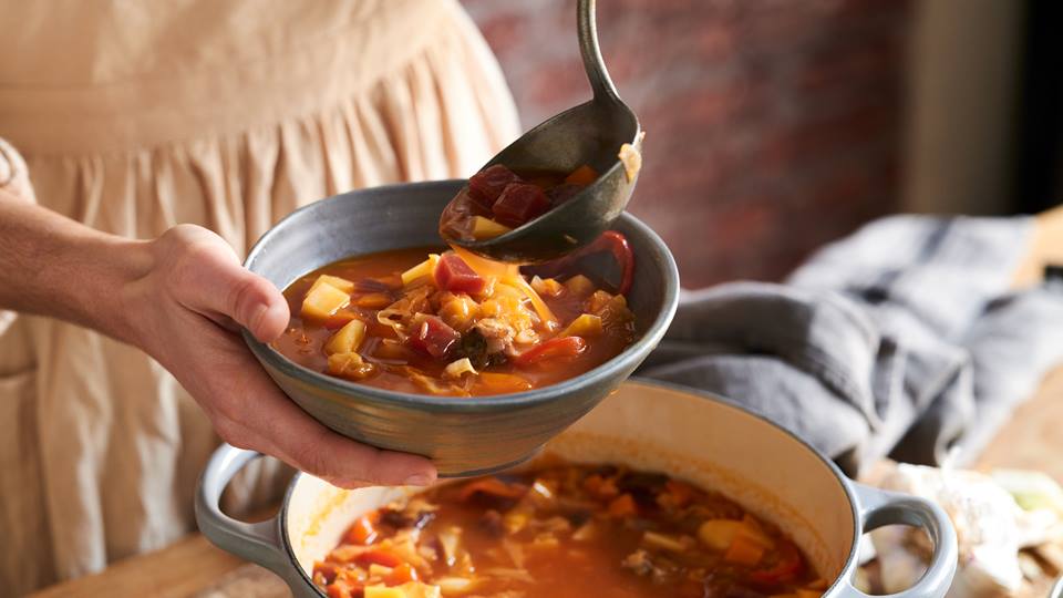 Manchen schmeckt Borschtsch aufgewärmt am nächsten Tag sogar noch besser als frisch gekocht. Es ist nur wichtig, die Crème fraîche (oder alternativ saure Sahne) immer erst direkt vor dem Servieren hinzuzugeben. Als passender Begleiter eignet sich ein Spätburgunder.