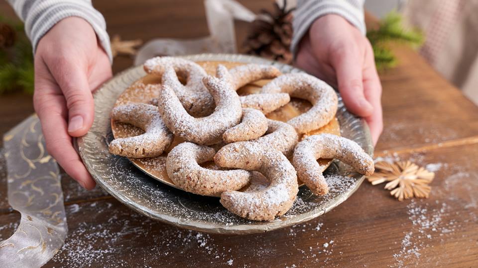 Mit bemehlten Händen aus walnussgroßen Teigstücken Kipferl formen und auf einem mit Backpapier ausgelegten Backblech bei 175 °C Umluft 12–15 Min. backen.
