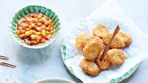 Portionsweise in heißem Erdnussöl in ca. 2 Min. goldbraun und knusprig ausbacken. Bananenstücke auf Küchenpapier abtropfen lassen und mit dem Chutney servieren.