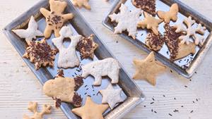 Verziert mit Schokolade oder Zuckerguss oder bestäubt mit Puderzucker machen die Plätzchen auf dem Teller besonders viel her