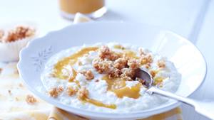 Zubereitung von: Kokos-Milchreis mit Ingwerkrokant