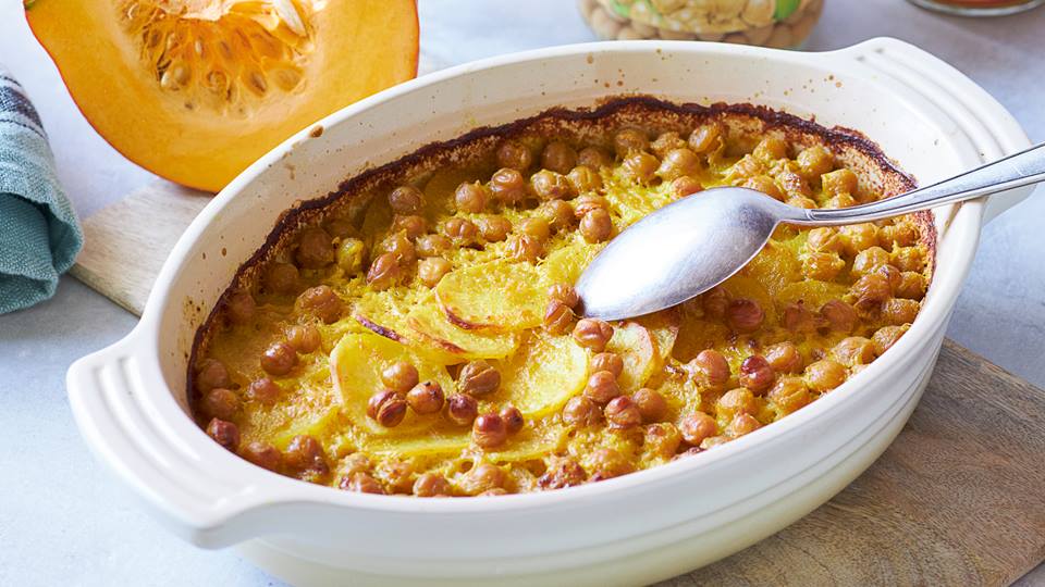 Kichererbsen über Gratin geben