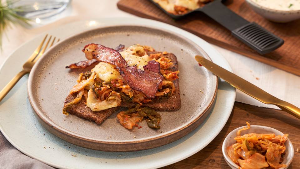 Raclette-Pfännchen Kimchi mit Bergkäse und Bacon