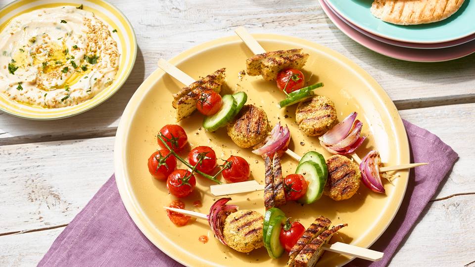 Tofu-Falafel-Spieße mit Tomate und Gurke